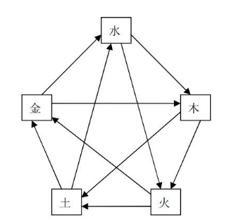 相生关系为:金生水,水生木,木生火,火生土, 土生金;