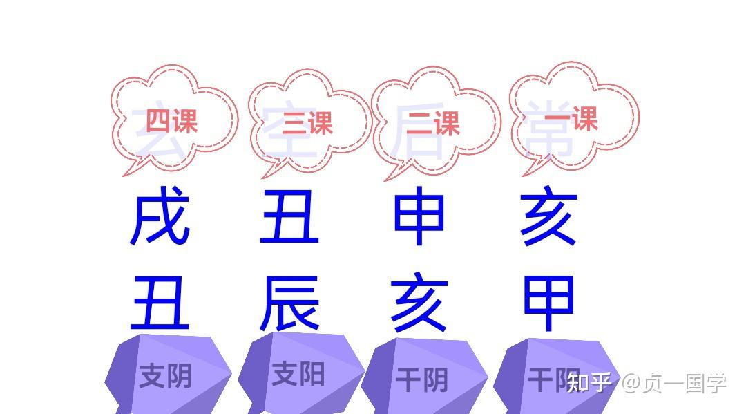 再看地盘丑上是戌,则把戌字写在丑上,此为第四课,为支阴。