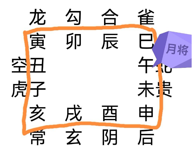 从此这十二个地支永远处在这个位置不变了,是为地盘。地盘主静,大家要把这个图像及其对应的地支牢记在心,在起盘的时候是不必写出来的。只写出天盘即可。