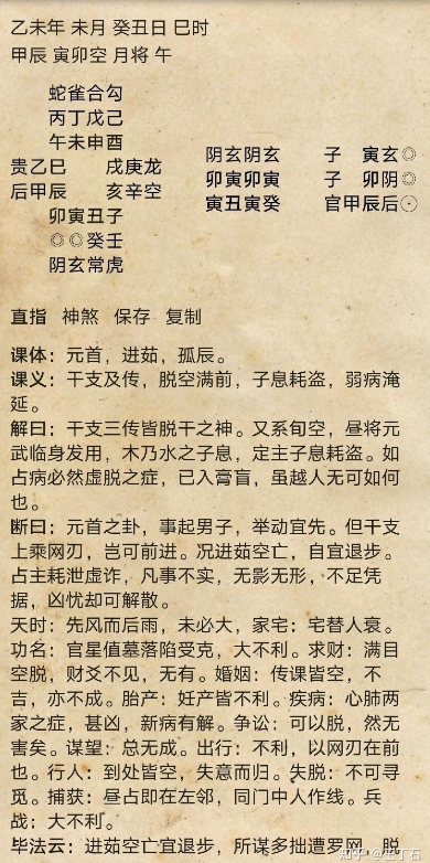 寅为玄武加干上并发用旬空。玄武的阴神为贼神卯也是旬空。玄武空贼神空,那就肯定没有偷盗。
