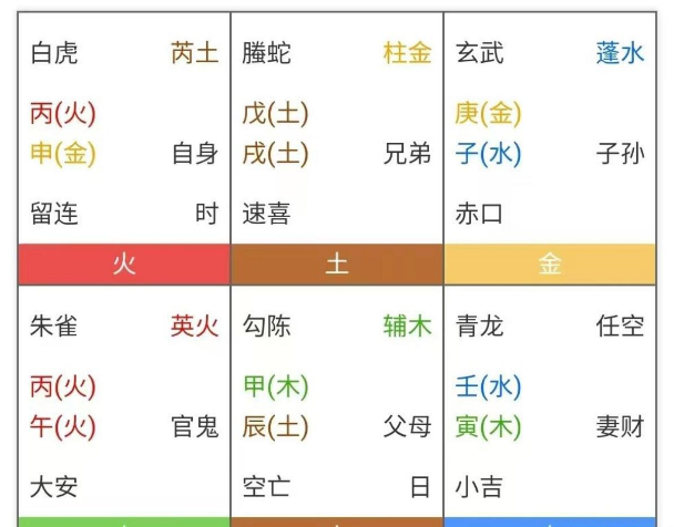 再看官鬼。朱雀英火临官鬼落大安。官鬼大安说明阻碍在工作上。朱雀为流血也同样代表受伤。