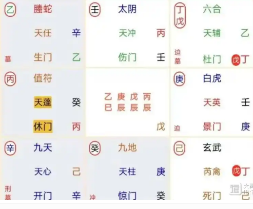 农历11月,看下边中间这一个庚加癸惊门加天柱星,这些就是代表吵闹大的象,证明他本人他可能会主动吵闹,就是说都走到农历十一月就是这种现象。