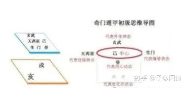3. 奇门遁甲天盘的信息就非常的多,有八神、八门、九星、天干。下图:奇门遁甲天盘与地盘的信息图
