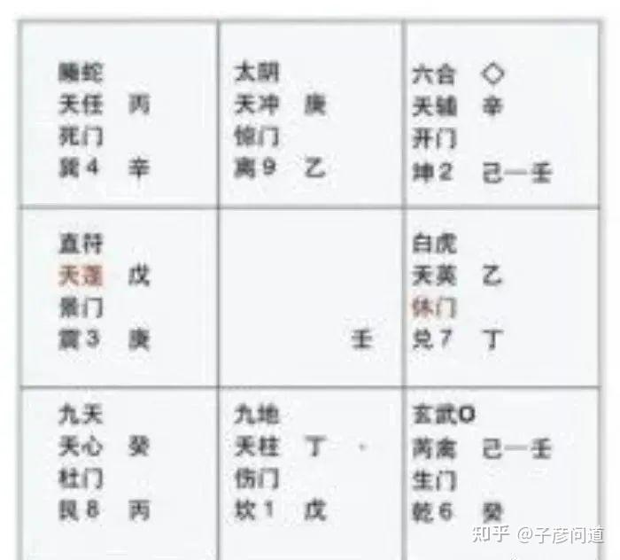 “子”是地盘,也就是这里的地头蛇,上面的信息“九地、天柱星、伤门、丁、戊”的好坏必须由下面的“子”来决定。“子”这个位置也就是八卦图的“坎”卦。