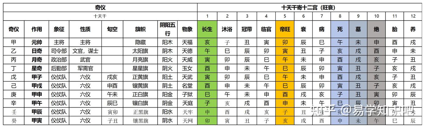 奇门遁甲知识12-奇仪及十天干寄十二宫旺衰
