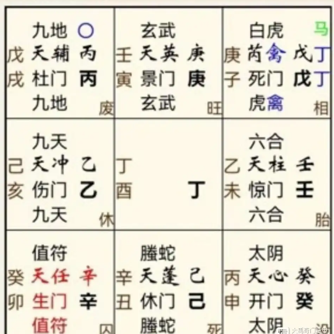 2.日干辛天盘临艮宫,逢宫中甲木临官禄地,值符吉神;运气良好。