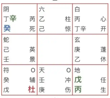 再看偏财丁,在巽宫,太阴 + 死门 + 天芮 + 癸 = 又是这小人,癸还击刑、辛入墓,这个癸有点凶,起到坏作用