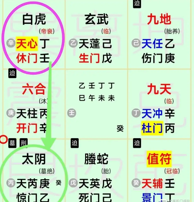 天心是学习潜力,落震宫。天心克癸,学习潜力不好挖掘,年干乙是录取学校。乙克癸,凶。