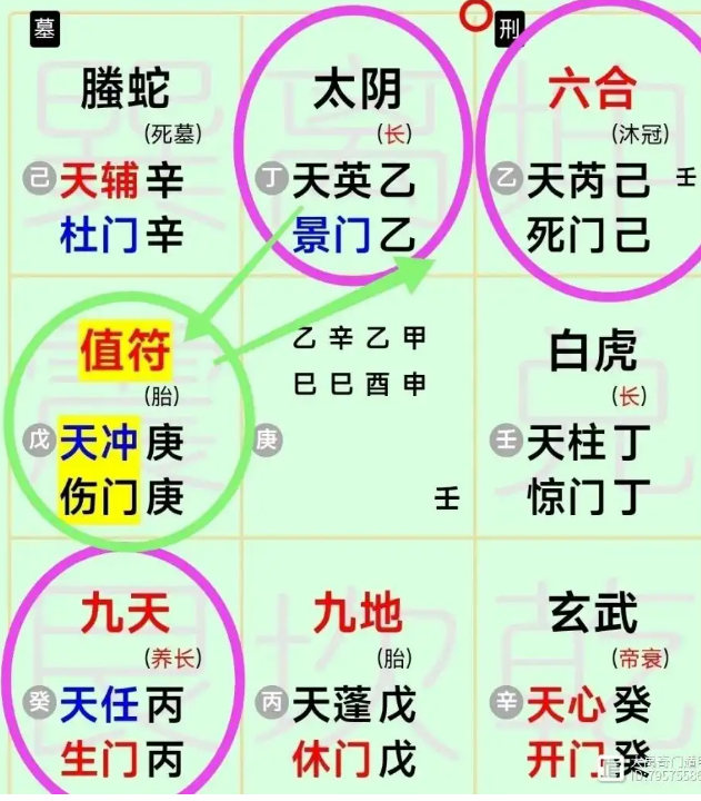 无白虎+庚,不象癌症。但对宫临九天,不吉。但又临生门,又添吉。
