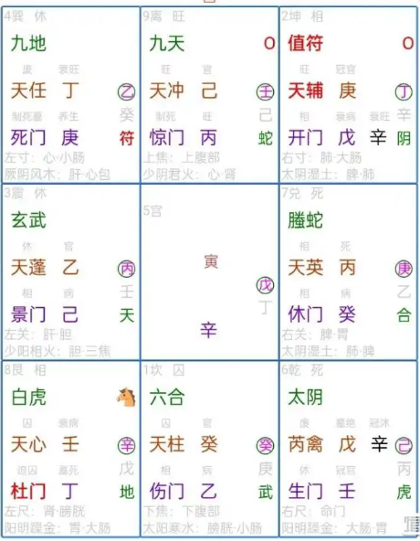 丙为求测人落七宫为死地,状态死气沉闷。地盘丙落于九宫升殿非常好。地盘丙升殿说明有源源不断的能量,说明有根。好比一颗大树,他有根,有源源不断能量输送给他。