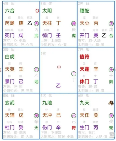孕妇看坤宫,坤宫内有天心星阴星,丙阳干,则看开门阴门,断女孩。