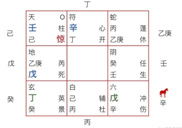 丁为求测事,丁为希望,癸为天网,玄武为迷茫,景门+天英为美好未来,这个宫位解读为看不见未来,有点抑郁症,