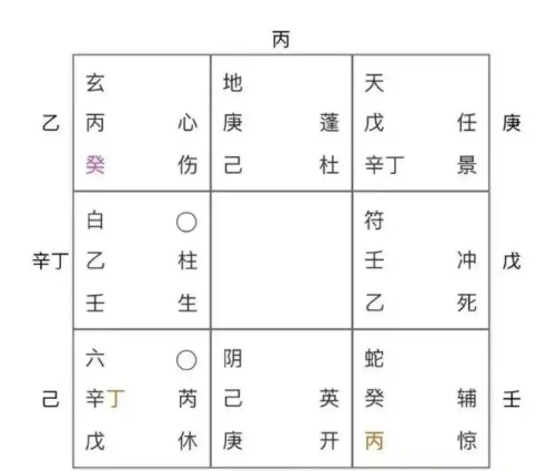 时干落宫和年干落宫都是乙,乙是丁之印,表示上面或者下面,天时地利都利于自己此事。