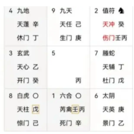 2.戊加己貴人入獄,天柱星廢地,驚門兇門,白虎兇神;會下跌。