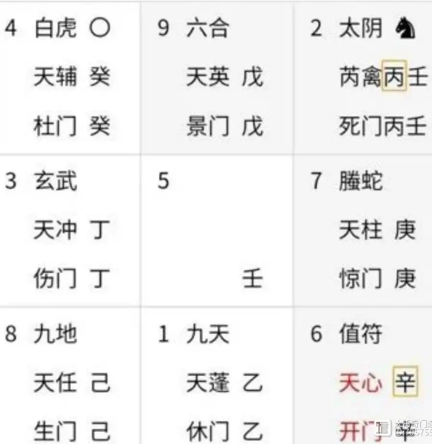 4.日干丙天盘临坤宫,逢宫中壬长生旺地;求测人在此事中有利。