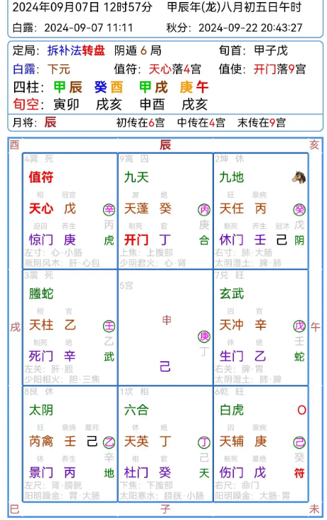 后来晚上反馈是面试没有上,我就没搞懂这个局,为什么值符生值使,值使生日干,怎么就上不了呢。是不是也要看下时干,时干空亡临白虎,而且是天乙伏宫。但是这样看又和前一种看法矛盾,这种的要怎么看呢?